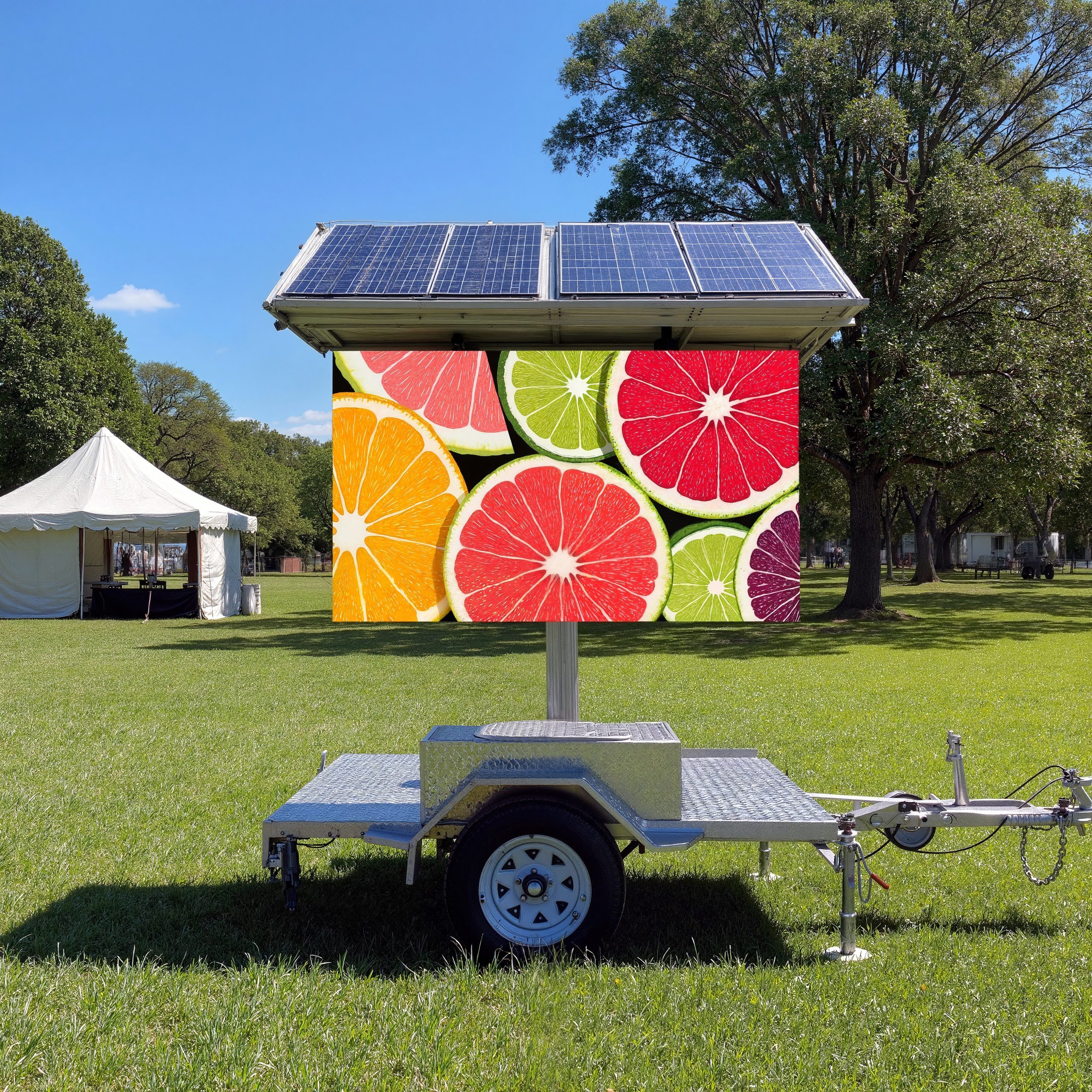All our mobile billboards are equipped with solar panels and backup batteries for 24/7 operation. This means we can place your sign virtually anywhere, without the need to plug into external power. From a sunny spot outside a home for sale to the entrance of a festival, our trailers keep your advertisement running reliably using clean, renewable energy. No power source? No problem – your sign will shine wherever you need it.